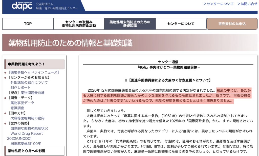 この教育を推進している厚生労働省、(公財)麻薬・覚せい剤乱用防止センターは立場上、世界でどんな変化があっても、自分たちがこれまで発信してきたことを撤回はしないでしょう。