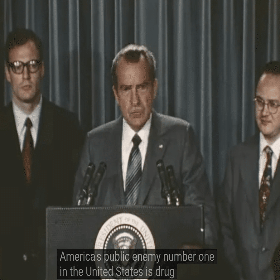 ニクソンのアドバイザーであったジョン・アーリックマンは、ニクソン元大統領は黒人と反戦活動者を逮捕するために薬物取り締まりを利用したと1994年に回想している。